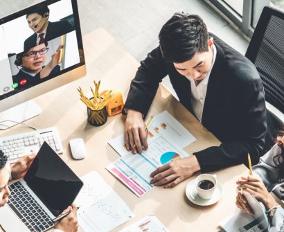 Business people working together conference and studying online